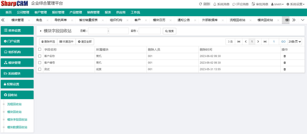 SharpCRM擁有(yǒu)數(shù✘λ)據删除回收站(zhàn),可(kě)輕松恢複已删除的(de)數(shù)據記錄。